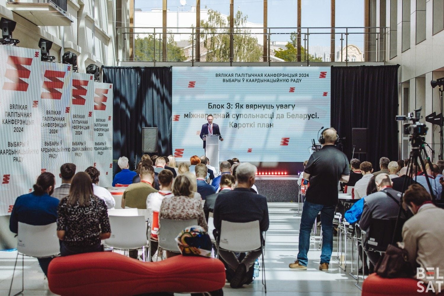 Candidates for the Belarusian opposition's Coordination Council present their strategies at a conference in Warsaw.