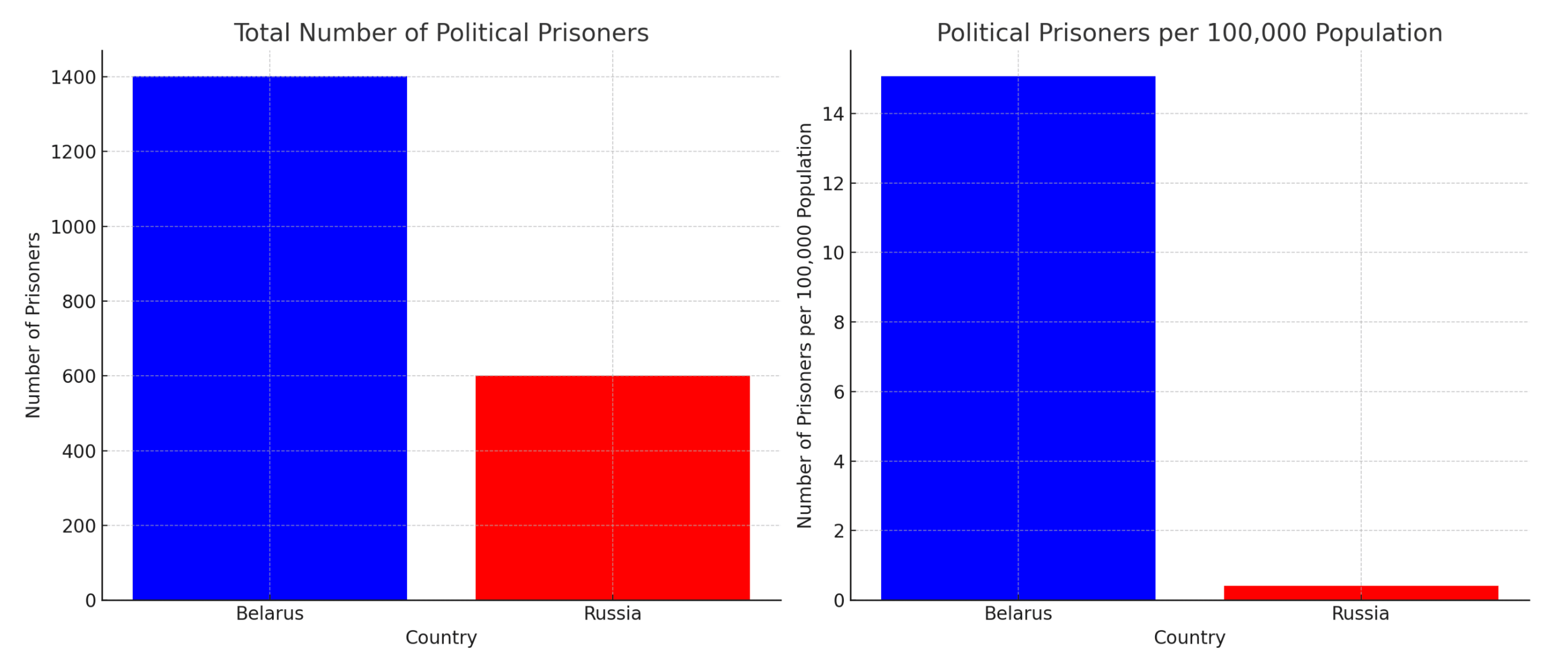 Data sourced from public resources. Human Rights Center "Viasna" monitors political prisoners in Belarus. The founder of the center, Ales Bialiatski, a Nobel Peace Prize laureate (2022), is also imprisoned as a prisoner of conscience