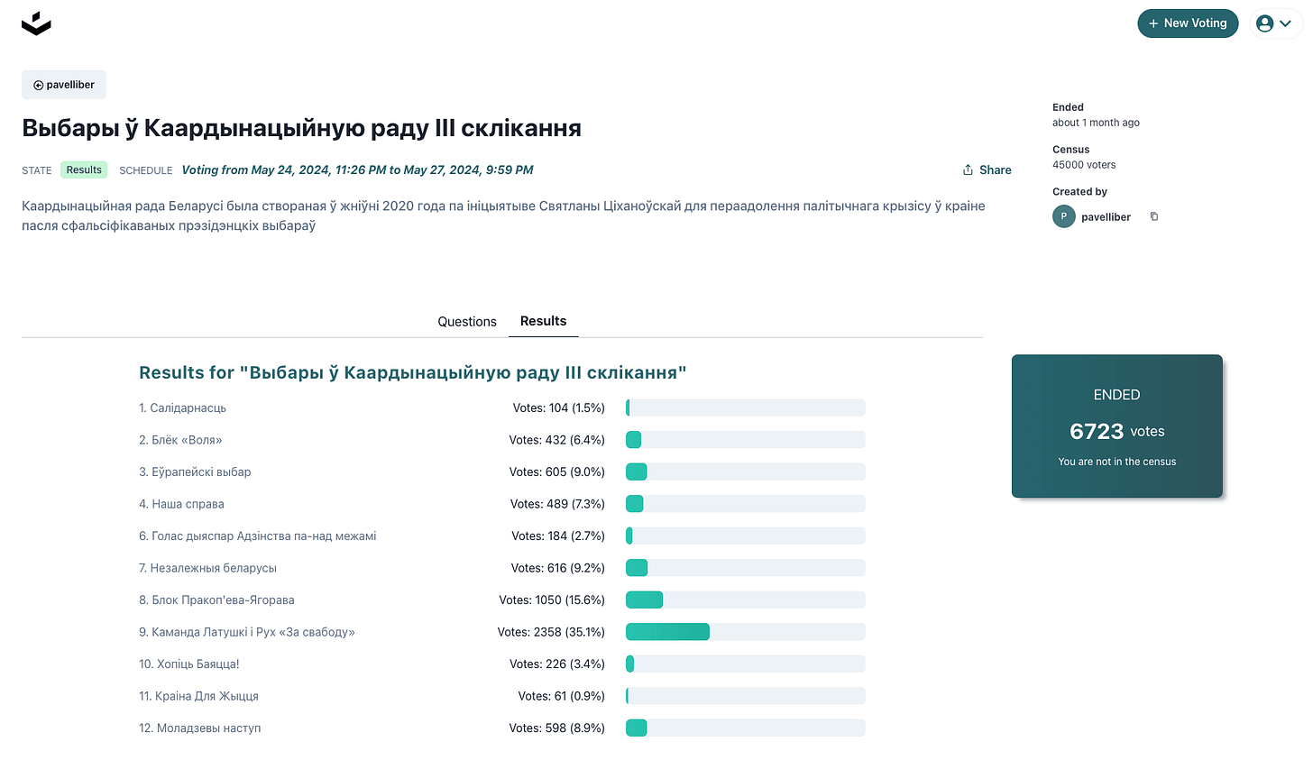 This election platform did not become part of New Belarus in terms of code; it became a standalone product, but an open one, distributed and accessible to everyone. The entire platform is open-source and can be used by anyone under the appropriate license without any restrictions.